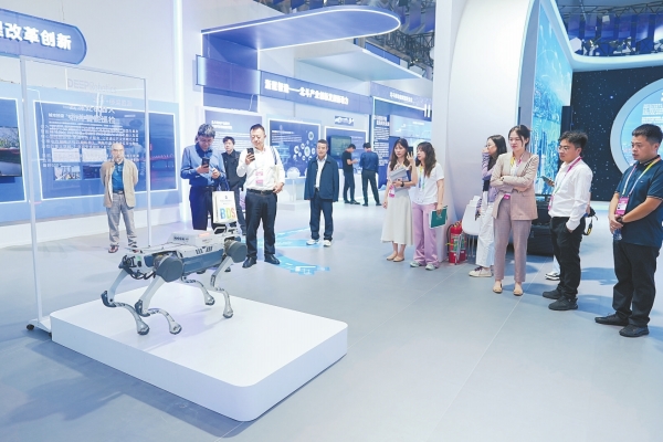 9月24日,北斗场景示范展现场,嘉宾在给机器狗拍照。