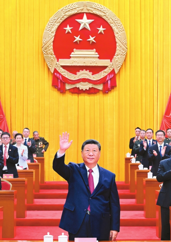 上午10时30分许,在欢快的乐曲声中,习近平等领导同志走上主席台,全场响起长时间的热烈掌声。