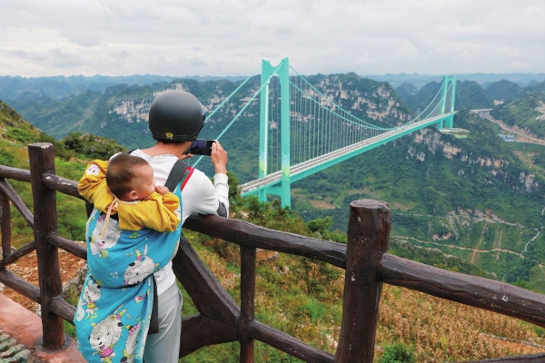 9月27日,不少群众来到贵州省花江峡谷岸边参观将于9月28日正式建成通车的花江峡谷大桥。