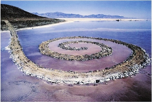 1970年,罗伯特·史密森在美国犹他州大盐湖东北岸一片被石油公司遗弃的荒凉之地上,用推土机将6000吨玄武岩、泥土倒入湖中,打造长457米、宽4.6米的螺旋形堤坝。这里远离城市,没有游客,作品随湖水水位变化时隐时现:水位高时完全淹没,水位低时露出盐晶覆盖的黑色堤身。史密森刻意将作品置于“文明边缘”,拒绝成为旅游景点,甚至不允许商业机构宣传,旨在让艺术纯粹属于大地。这种“远离人群”的界限设定,体现了早期大地艺术“反商业化、反大众化”的激进态度。