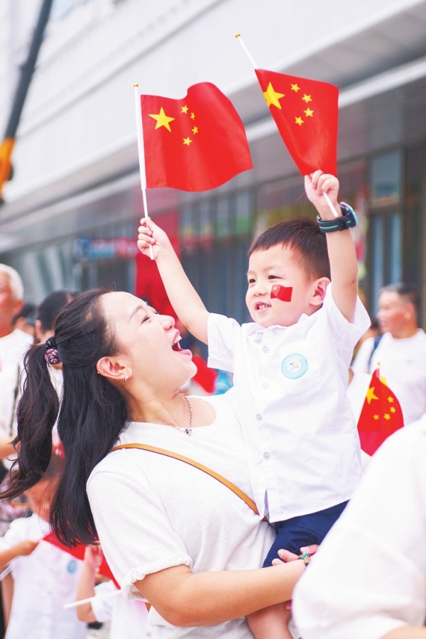 9月30日,娄底市娄星区格林幼儿园开展庆祝活动,小朋友们挥舞五星红旗,祝福祖国,迎接国庆、中秋双节的到来。