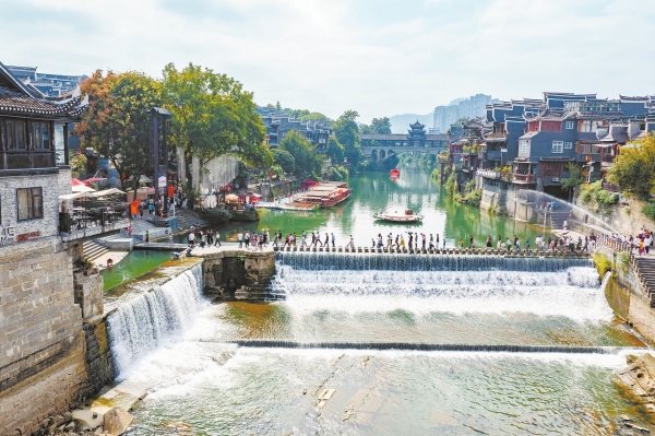 10月5日,游客在吉首市乾州古城休闲游玩。刘振军 摄(湖南图片库)