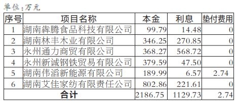 1.湖南犇腾食品科技有限公司等6户不良贷款,截至交易基准日2025年9月14日债权本金、利息、费用明细见表。