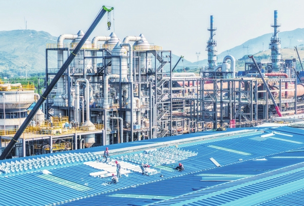 10月11日,道县蚣坝镇湖南紫金锂多金属新材料有限公司年产6万吨碳酸锂项目施工现场。时下,该项目进入设备、厂房安装冲刺阶段。建设者们抢工期,抓进度,为正式投料生产奠定基础。