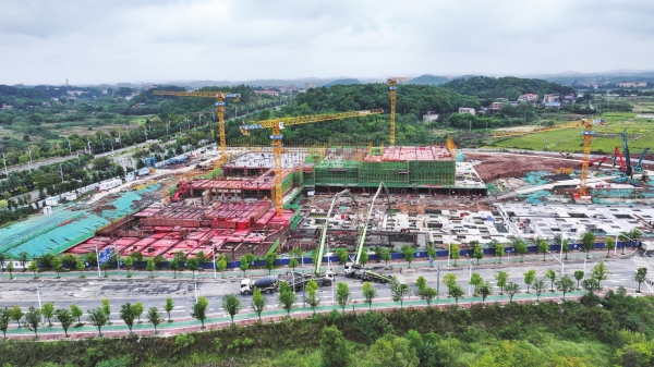 10月20日,永州市中医医院(滨江新城)新院一期项目建设现场,工人在加紧施工。 作为市级重点民生工程,该项目将建成集急门诊、医技、住院等功能于一体的现代化医疗综合体,投用后将显著提升区域医疗服务能力。