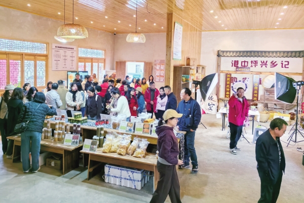 驿站外墙上,企业最新招聘信息贴满就业信息发布栏;驿站内,入口处两块电子屏滚动展示村民线上发布的求职信息;各式农产品在此陈列,通过线上平台“飞”出乡村,走进千家万户。