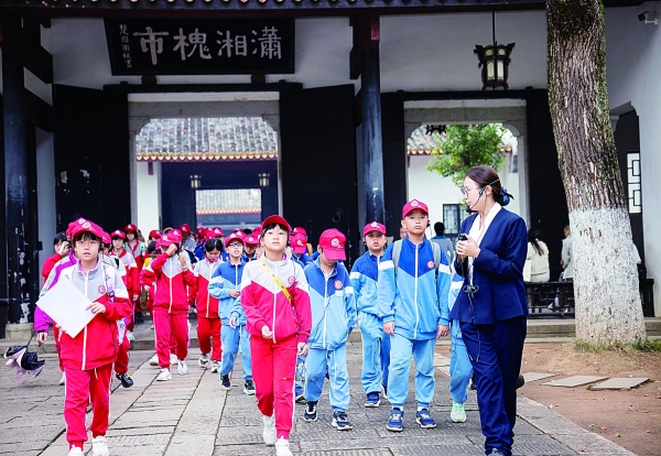 “知岳麓是第一步,要做的就是充分利用好湘江新区的文化资源,尤其是岳麓山在长沙人心中无可替代的地位,要把课堂搬到山脚下。”该校负责人表示,2025年上半年,一批批小学生走进岳麓山、新民学会旧址、肖劲光故居,开展“恰少年·知岳麓”主题研学。