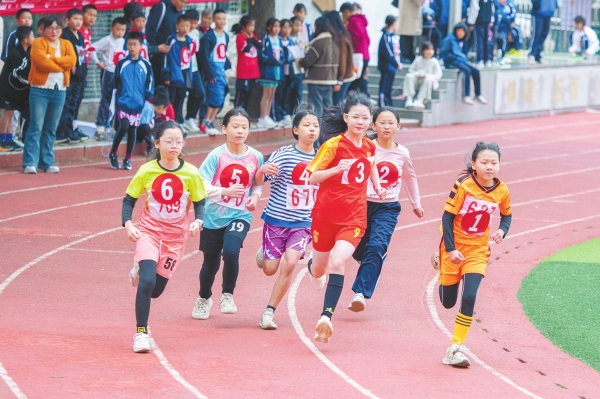 10月21日,学生在参加跑步比赛。当天,娄底市娄星区第五完全小学举行秋季运动会。学生们在体育项目中强健体魄、磨炼意志,展现阳光向上的精神风貌。