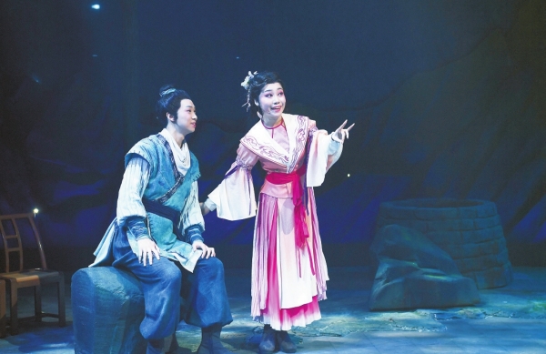 在保留原有花鼓戏经典唱段的同时,《新刘海砍樵》还引入了时代新思想,抛弃了“两女争一男”的戏剧旧叙事,转而鼓励年轻女性走出家园去看看外面更大的世界,不为小情小爱所困。戏剧中,以传统花鼓戏唱腔为主,融合当下流行的音乐剧表演方式,共同形成了一种别样且新颖的戏剧表达方式。声光电等技术打造的视觉奇观,让观众不会为大段唱段所累,剧中还有演员和观众互动的“小彩蛋”,打破了舞台的“第四堵墙”,看戏人也成为了戏中人。