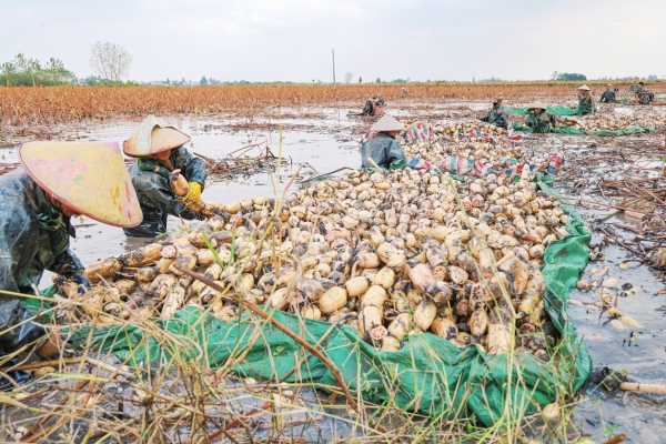 10月22日,南县乌嘴乡又东村,村民在采收莲藕。时下,该村莲藕迎来丰收季。近年来,该县依托水土资源优势,因地制宜发展“藕+虾”“藕+鱼”等生态种养模式,既壮大了村集体经济,又带动了村民就业增收。