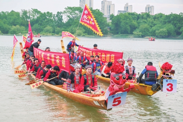 10月25日,湘超永州赛区“扒龙船·看湘超”出征仪式在道县周敦颐广场码头举行,6艘道州龙船载着百名球迷开启为期两天的潇湘巡游之旅。船队将于26日以独特方式亮相永州体育中心,为永州主场对阵长沙的湘超之战助威。 湖南日报全媒体记者 郭立亮 摄