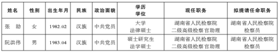 为进一步加强对省人民检察院提请省人大常委会任命人员的监督,增强其公信力和群众基础,现对拟提请省人大常委会任命法律职务人员进行任前公示: