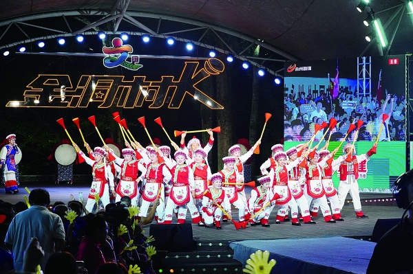 今年金洞村K共举办了5场,邀请了广东、广西等省外和湖南省内各市州34个在乡村振兴征途上有显著成就的乡村登台亮相,现场观众场均超过2000人,全网流量超2000万。川剧变脸、东安武术、江永女书、祁剧等非遗节目,瑶族、白族、侗族、苗族、土家族等民俗文化展演,让金洞大山里的群众在家门口就能享受丰盛的文化大餐。