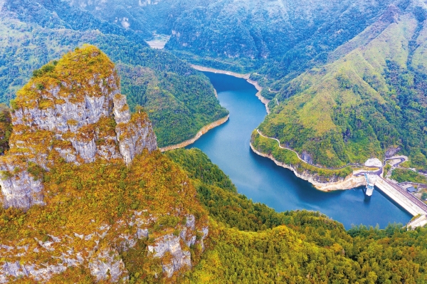 10月30日,吉首市黄石洞水库碧波荡漾、青山环抱,宛如一幅天然的山水画。