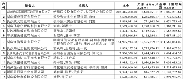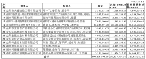 注:本公告资产清单列示贷款本息余额截至2025年6月30日,债务人和担保人应支付给湖南省财信资产管理有限公司的利息按借款合同、担保合同、法院判决及中国人民银行有关规定计算。