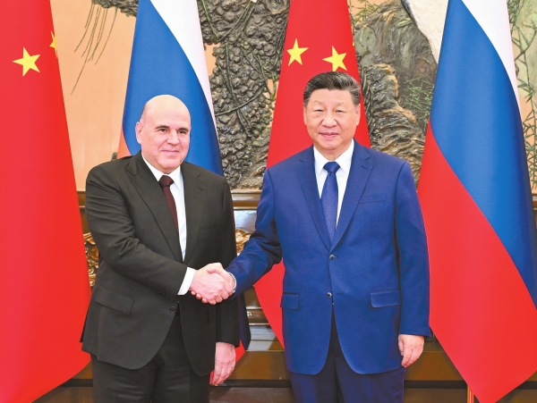 米舒斯京转达普京总统对习近平主席的亲切问候和良好祝愿。米舒斯京表示,祝贺中共二十届四中全会成功举行,相信中国一定会顺利实现“十五五”规划建议确定的目标,取得更大经济社会发展成就。两国元首今年两次会晤,对俄中关系发展作出战略规划,巩固了俄中全面战略协作伙伴关系。俄方愿同中方一道,落实两国元首达成的重要共识,深化经贸、科技、能源、农业、数字经济等领域合作,密切人文交流,加强多边协调配合,推动两国合作取得更多成果。