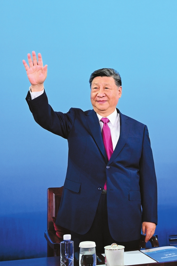 11月9日晚,中共中央总书记、国家主席、中央军委主席习近平在广东省广州市出席中华人民共和国第十五届运动会开幕式并宣布运动会开幕。这是习近平在主席台上向大家挥手致意。新华社 发