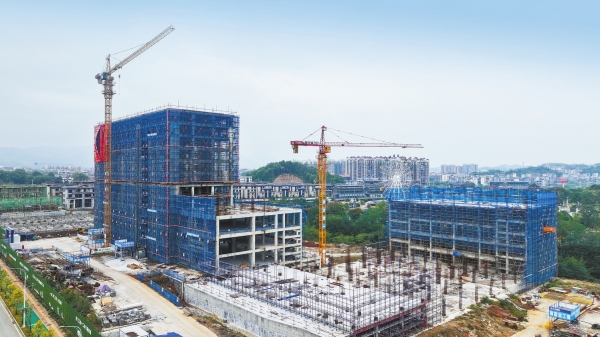 11月11日,新田县润兴城二期安居工程建设工地塔吊林立、机械轰鸣。近年来,该县把安居工程列入重点民生建设项目,不断完善安居工程周边配套设施,进一步提升人民群众的获得感、幸福感。