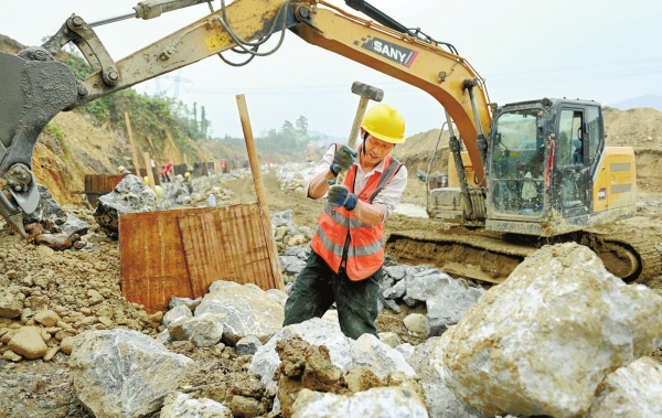 11月17日,洞口县高沙镇南泥村,工人在修建农田灌溉水渠。立冬后,该县工人们抢抓枯水期有利时机,修建、加固农田水利设施,为来年防汛抗旱和农业生产打好基础。