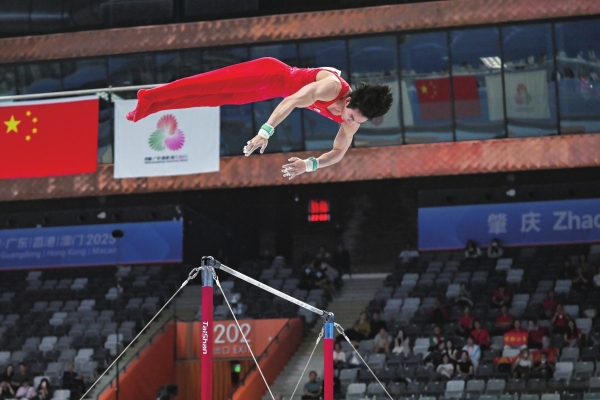 湖南日报广州11月17日电(全媒体记者 蔡矜宜)今天,十五运体操项目迎来收官日,湖南高速体操队“劳模”张博恒终于拼下自己的首枚全运会金牌!在当晚进行的男子单杠决赛中,张博恒凭借一套稳稳落地的高质量动作,拿到14.860分,夺得冠军!最终,他以1金4银的战绩,为自己的第二次全运之旅画上一个圆满的句号。