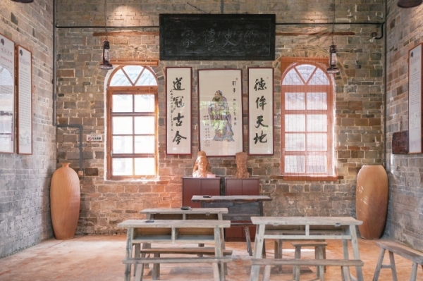 博物馆的前身,是1936年的灌溪学校。抬头看,拱井式长窗透着西洋风情,三面环绕的木质结构又满是中式韵味。