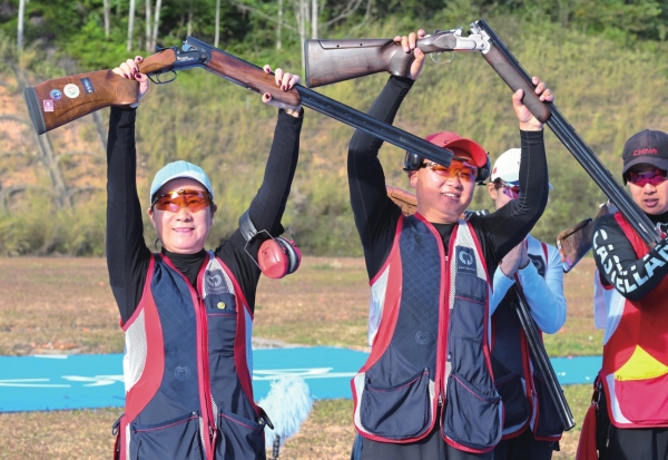 在广州飞碟训练中心展开较量的飞碟多向混合团体金牌赛中,第八次参加全运会的老将刘英姿与队友郭雨浩搭档,以44中对42中,击败陕西队肖金佳、段宇薇组合,为湖南代表团射下本届全运会的第9金。