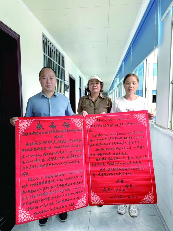 李红英第一时间告知龚美琴办证的流程和所需资料清单,当时正值持续高温天气,考虑龚美琴身体不便,让其少跑路。李红英主动联系当地自然资源所和社区干部到现场调查核实,协调基层工作人员补充完善相关资料。当龚美琴拿到不动产权证书时感慨道:“这不仅仅是一本证书,更是政府给我们归乡游子的定心丸!我深切感受到贵局‘群众事无小事’的责任担当,你们用行动诠释了政策有力度、服务有温度、办事有速度。”办结几天后,她将这一封仪式感满满的感谢信送到了武陵区自然资源局。