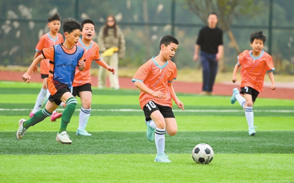 12月3日,洞口县第二芙蓉学校学生参加全县中小学生校园足球比赛。近年来,该县通过完善体育设施、组建足球社团、开展校园联赛等举措,让孩子们在运动中享受快乐、增强体质,校园足球氛围日益浓厚。