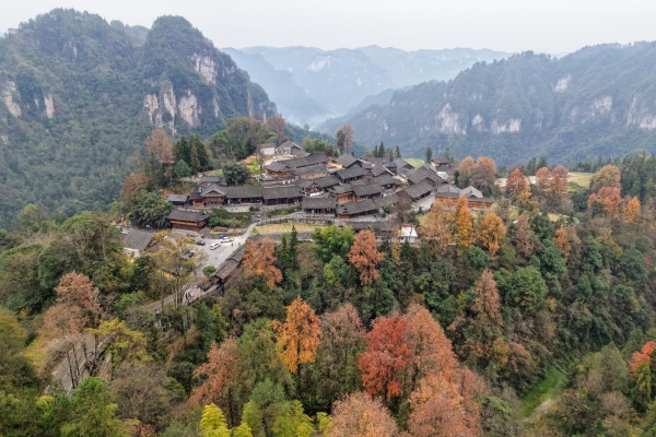 12月4日,初冬时节,花垣县双龙镇十八洞村被五彩斑斓的山野环抱,宛如一幅油画,美不胜收。