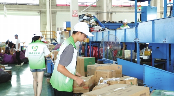 12月4日,在蓝山县县乡村三级物流配送体系智能分拨中心,来自全国各地的包裹经过扫描、录入信息、消毒等系列步骤后被放上传送带,智能分拣到各乡镇对应的网格中。这些分拣好的快递包裹每天将会和乘客们一起“坐”着公交车下乡进村,村民们在自己家门口就能实现“寄递自由”。