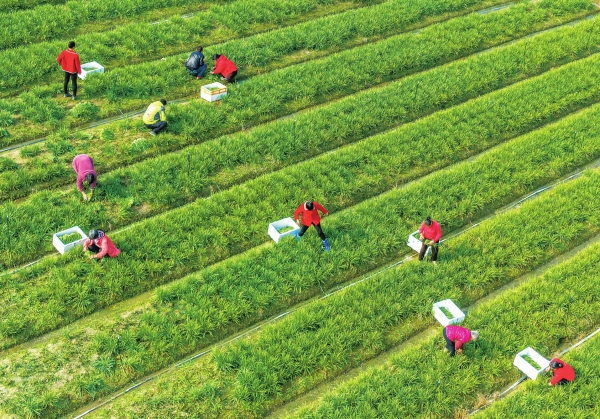 12月9日,东安县芦洪市镇华兴村有机蔬菜种植基地,村民在采收韭菜。当前正值基地韭菜收获旺季,村民抢抓农时有序采收,确保市场供应。近年来,该县大力发展有机蔬菜产业,有效促进农业提质增效,带动农民增收致富。