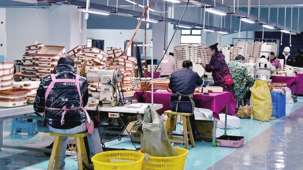 走进湖南省恒森箱包有限公司,一楼成型车间机器轰鸣,只见一块块方形塑料板,在机器和模具作用下,压成不同纹样、形状的箱体雏形,散发阵阵热气。走进二楼组装车间,缝纫机“嗒嗒嗒”声此起彼伏,工人们给箱体拧螺丝、做内衬、缝网布、套皮条、上拉链……大家争分夺秒赶订单。