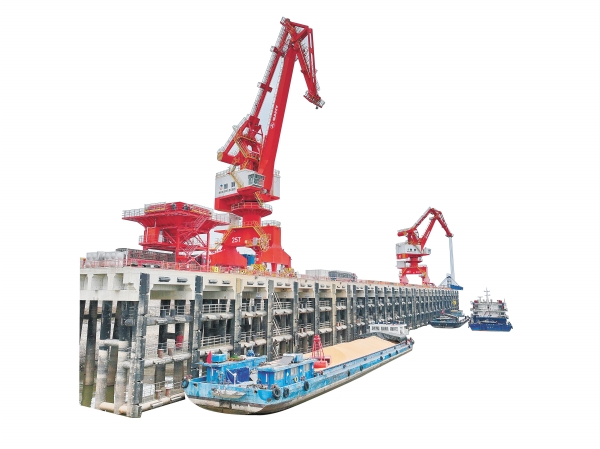 虞公港的物流优势就此凸显:即使是枯水期,也具备5000吨级通航能力。对工程机械这类“大块头”来说,意味着更少的拆装、更低的单次运费。更重要的是,从这里出发,船舶可直接进入长江干线,无需中转,一路直航。