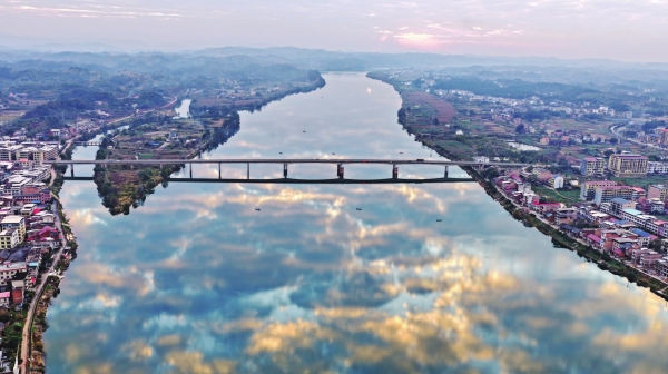 12月15日,湘江常宁市新河镇段,彩云、绿水与沿岸景观交相辉映。近年来,常宁市坚持生态优先、绿色发展理念,通过落实河长制推进水岸同治,持续改善母亲河生态环境。