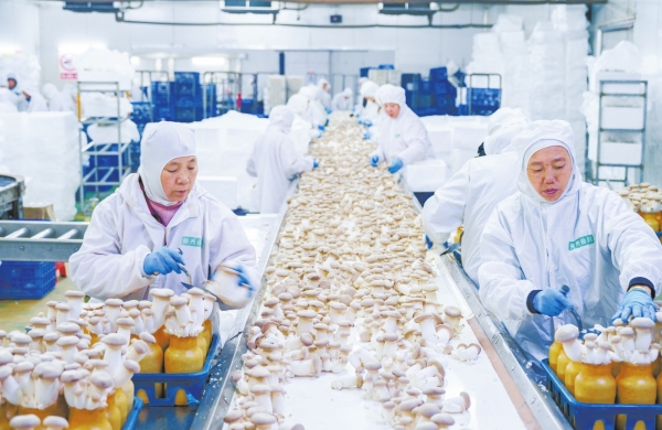 12月16日,永州市冷水滩区湖南省宇秀生物科技有限公司杏鲍菇生产基地,工人在采收杏鲍菇。该基地日产30余吨,产品远销欧美、东南亚。近年来,冷水滩区立足资源禀赋优势,通过政策引导、技术创新等措施发展食用菌产业,带动群众增收。