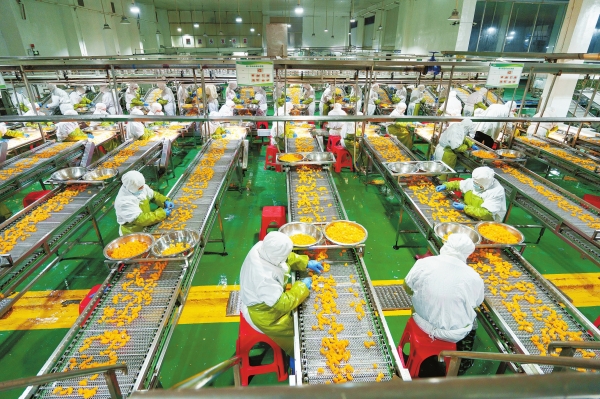 12月24日,永州市冷水滩区湖南熙可食品有限公司,工人在生产线上加工柑橘罐头。临近年底,企业开足马力赶制柑橘罐头,保障海外订单供应。近年来,冷水滩区大力发展柑橘加工产业,建成完整产业链,有效带动农民增收。