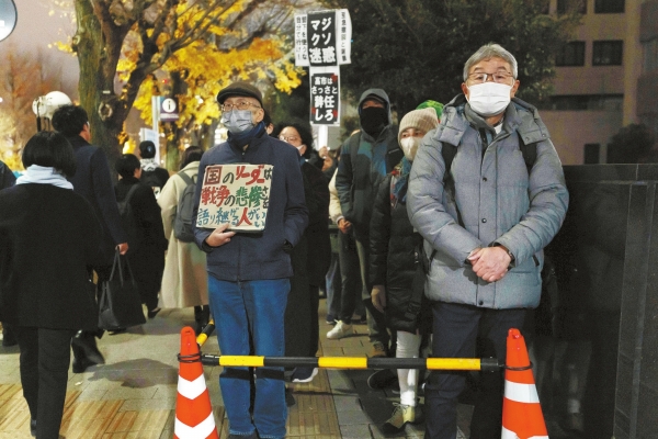 日本民众12月23日晚在日本东京首相官邸前举行抗议集会,要求首相高市早苗撤回涉台错误言论,并批评首相官邸负责安保政策的官员有关“拥核”的言论。
