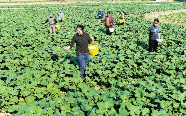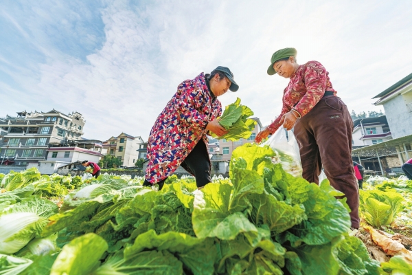 12月27日,吉首市石家冲街道曙光村蔬菜基地,村民在采收白菜。近年来,该村大力发展订单农业,实现集体经济与农户收入双提升。