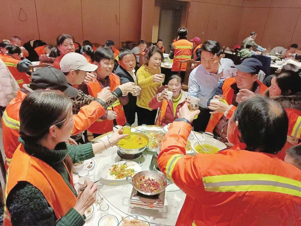 王心亮请环卫工人吃年饭。刘军麒 摄