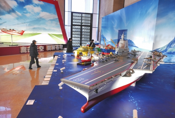 在“成就展”上展出的福建舰模型(12月29日摄)。