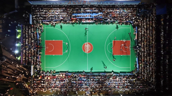 “村BA”设置牛、猪、羊等村味奖品,赛事中穿插了非遗展示、舞龙舞狮、拉拉操等表演,参赛者们以球会友,场边观众座无虚席、津津乐道。