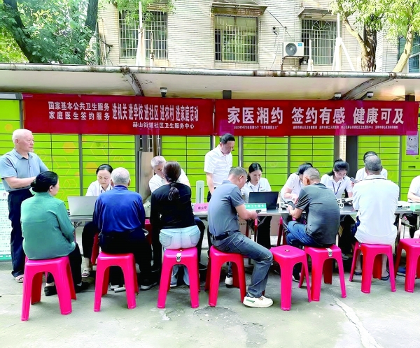 以医共体总医院为统筹核心,赫山区深入推进医防融合,以家庭医生签约服务为抓手,构建区级医院、乡镇卫生院、村卫生室“1+1+1”三级联动模式,组建437个家庭医生团队,对城乡居民健康实行网格化管理。通过全面推行六个一(“一单、一群、一卡、一码、一访、一床”)工作措施,开展针对高风险人群的“集中健康服务活动”“上门行动”等精准服务,推动基层医疗卫生服务从“坐堂行医”向“主动上门”转变,居民签约态度也从“被动接受”变为“主动续约”。截至2025年11月,重点服务对象“上门行动”累计服务178049人次,全区全人群家庭医生签约490699人,签约率达56.14%。