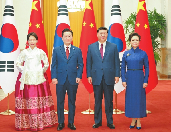 习近平指出,当前世界百年变局加速演进,国际形势更加变乱交织。中韩在维护地区和平、促进全球发展方面肩负重要责任,有广泛利益交集,应当坚定站在历史正确一边,作出正确战略选择。80多年前,中韩两国付出巨大民族牺牲,赢得抗击日本军国主义的胜利。今天更应携手捍卫二战胜利成果,守护东北亚和平稳定。作为经济全球化的受益者,中韩要共同反对保护主义,践行真正的多边主义,为推进平等有序的世界多极化、普惠包容的经济全球化作出贡献。