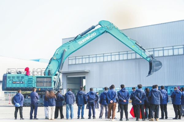 当日,出口中东地区的山河智能SWE1650FLR加长臂挖掘机在长沙山河工业城举行交付仪式。此次出口中东地区的SWE1650FLR加长臂挖掘机,凭借10.8米动臂与7.7米加强斗杆的组合设计,可实现最大挖掘高度17.2米,最大挖掘深度13.3米,大挖掘距离覆盖20.5米,是国内同级别臂长最长的超大型挖掘机,适应高速公路、铁路高边坡等高难度工况,满足港口码头、大型料场等广域作业需求。