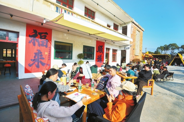 1月11日,娄底市娄星区大埠桥街道大埠桥村,市民和游客在当地“农家乐”游玩。吴永华 摄(湖南图片库)