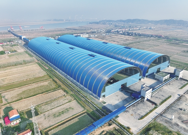 1月13日,湖南能源集团煤炭运销有限公司在岳阳铁水集运煤炭储备基地正式揭牌成立。这标志着湖南在构建全省统一煤炭购销体系上迈出关键一步,一个集采购、运输、储备、加工、销售于一体的煤炭综合服务平台全面启航。图为公司的煤炭条形仓。