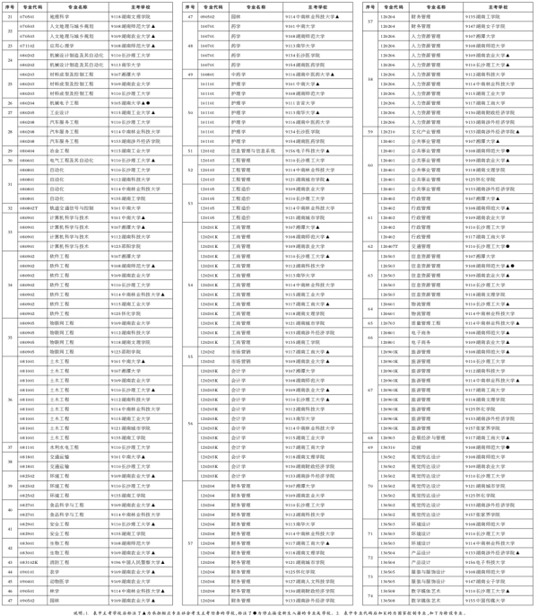 湖南省高等教育自学考试开考专业(专升本)
