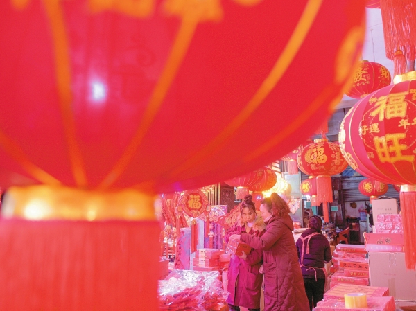 1月24日,市民在道县一家批发市场忙着选购新春饰品,喜迎新春佳节。