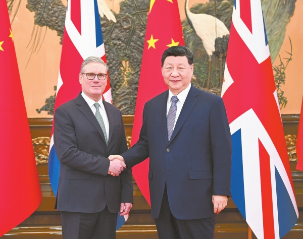 新华社北京1月29日电(记者 邵艺博)1月29日上午,国家主席习近平在北京人民大会堂会见来华进行正式访问的英国首相斯塔默。双方同意中英要发展长期稳定的全面战略伙伴关系。
