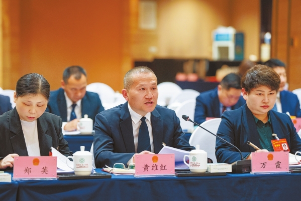 2月5日,常德市代表团黄维红代表在审议省人大常委会工作报告时发言。